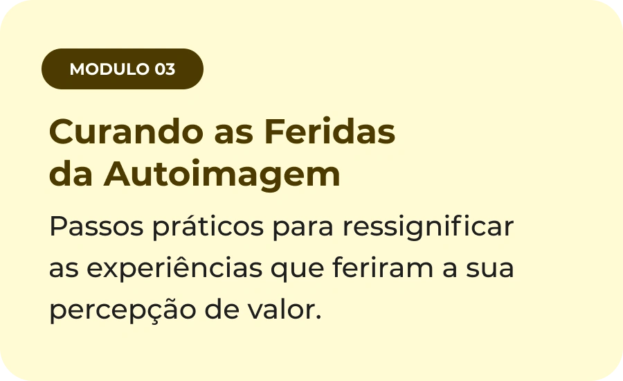 Se você marcou pelo menos um desses pontos, saiba que isso não é culpa sua. É um sintoma de uma ferida na sua autoimagem. E a boa notícia é que toda ferida pode ser curada.
